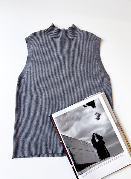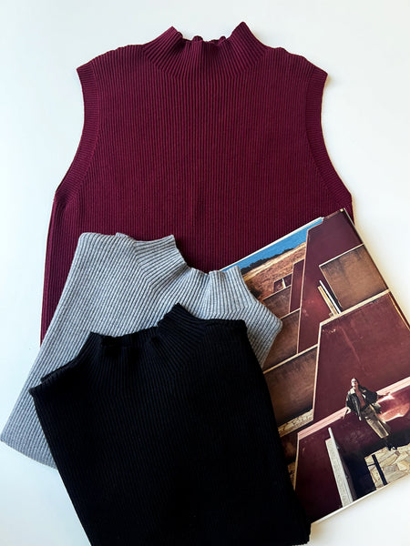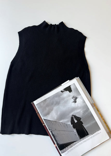 Αμάνικο πουλόβερ με mock λαιμόκοψη