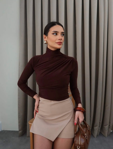 Μπλούζα ελαστική με πιέτες και mock λαιμόκοψη