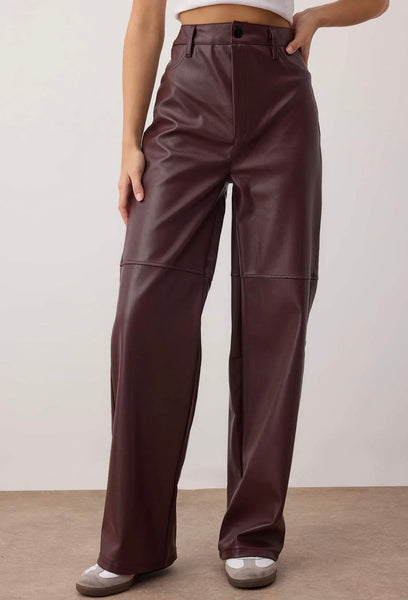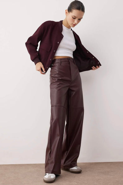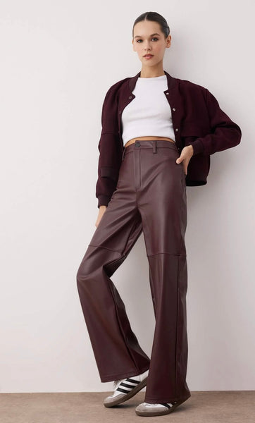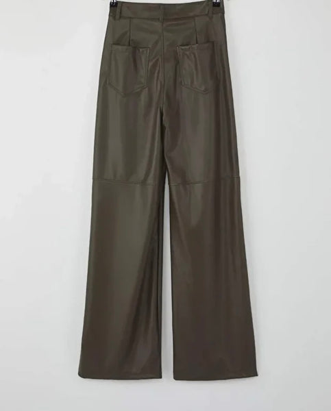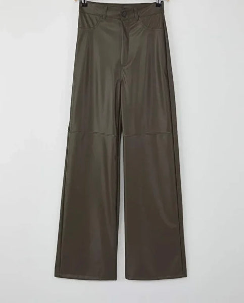 Παντελόνι ψηλόμεσο δερμάτινο wide leg