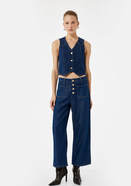 Παντελόνι τζιν flare με κουμπιά μπροστά