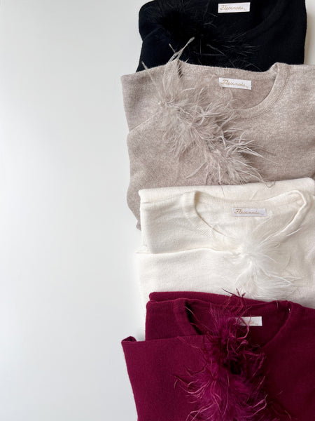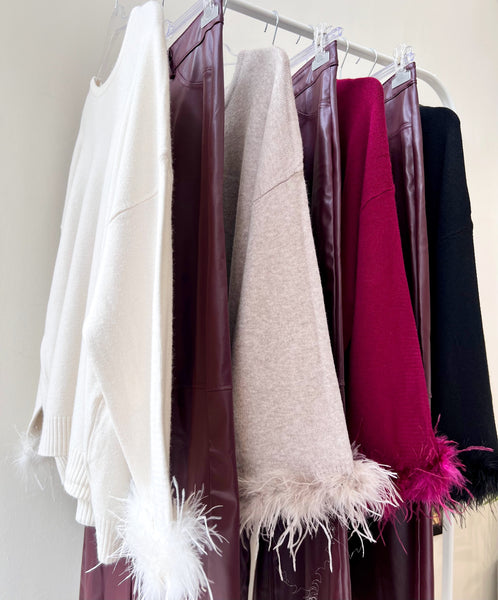 Πουλόβερ oversized με πούπουλα στα μανίκια