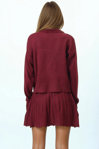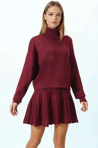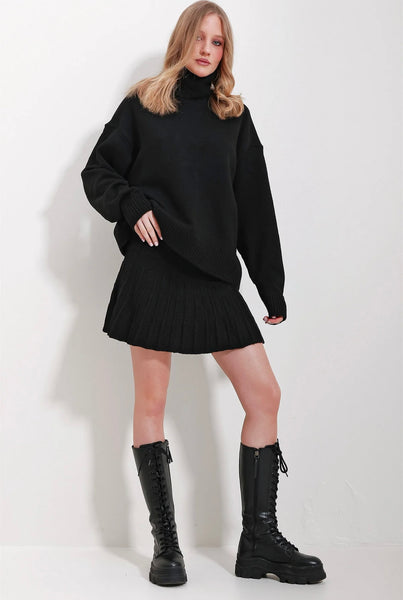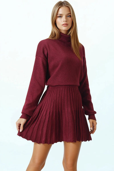 Πλεκτό σετ με cropped oversized πουλόβερ ζιβάγκο και φούστα πλισέ με λάστιχο στη μέση