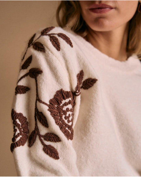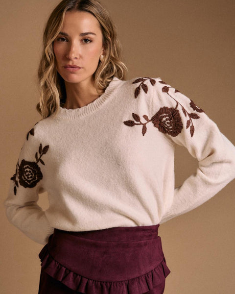 Πουλόβερ με κέντημα στους ώμους & στα μανίκια