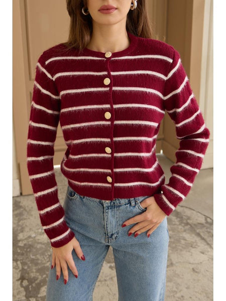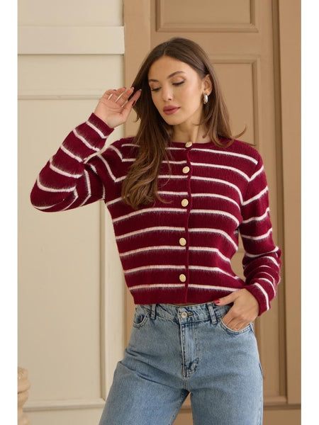 • Ζακέτα πλεκτή ριγέ με μαλακή ελαστική πλέξη