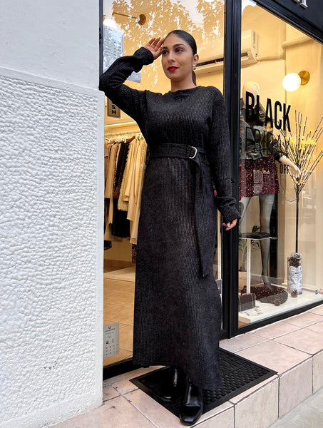 Πλεκτό φόρεμα ριπ με χρυσοκλωστή