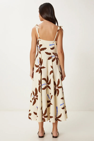 Φόρεμα midi λινό με prints σε Α γραμμή