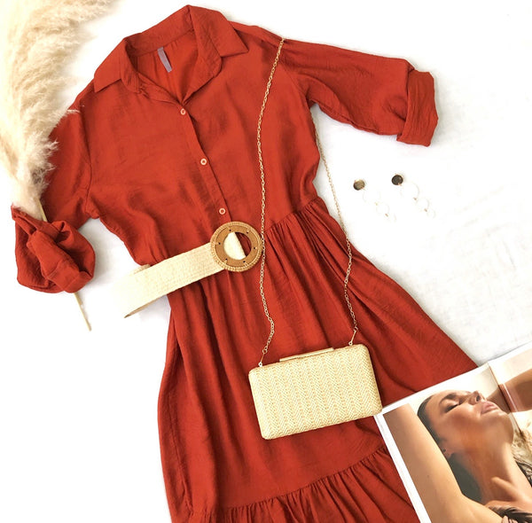 Μακρύ φόρεμα closs με κουμπιά και ρυθμιζόμενο μανίκι