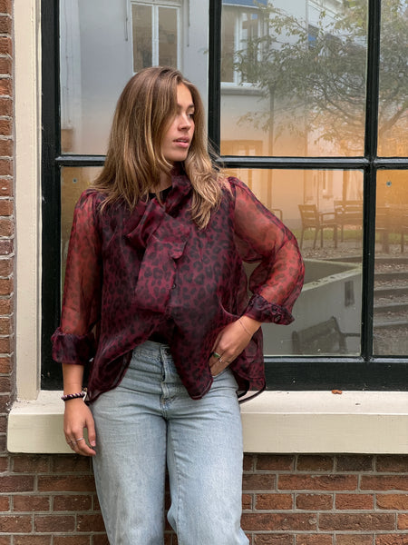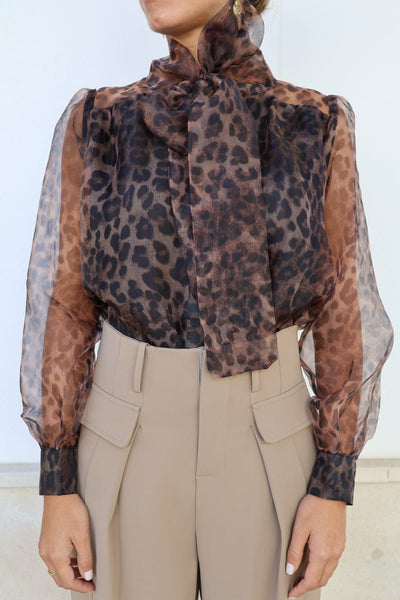 • Πουκάμισο οργάντζα animal print με δέσιμο στον λαιμό