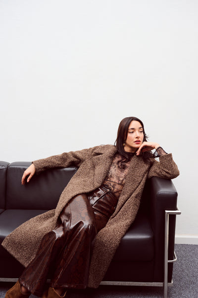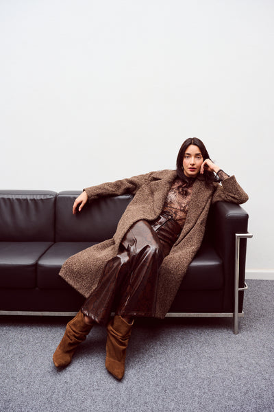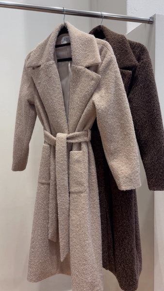 • Παλτό μπουκλέ με ζώνη στη μέση